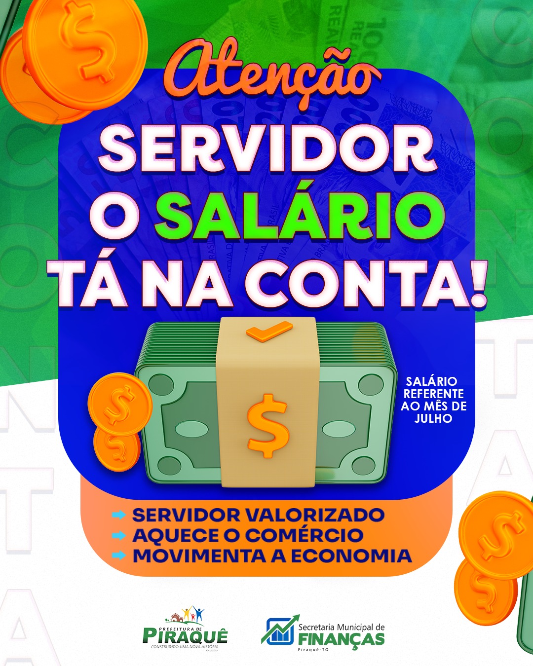 InícioPublicaçõesAlô, servidor! Alô, servidor! Publicado em 30 de julho de 2025Por João Vitor Vergil Do Nascimento Dutra O salário de julho já está na conta!Valorização e compromisso em dia, como sempre. SalárioNaConta #ValorizaçãoDoServidor #CompromissoComVocê