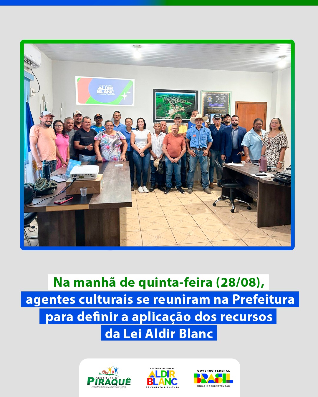 Na manhã de quinta-feira (28/08), a Prefeitura de Piraquê reuniu os Agentes Culturais da Sociedade Civil Organizada em Assembleia Geral para definir a aplicação dos recursos da Lei Aldir Blanc, destinados a fomentar a economia e a cultura local.