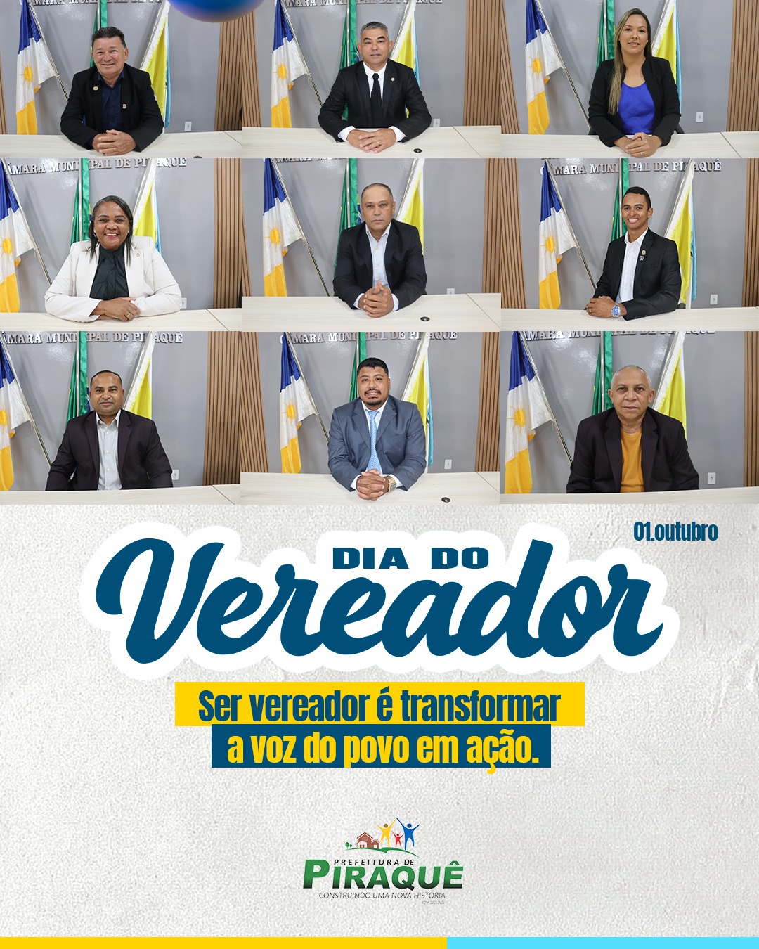 A Prefeitura Municipal de Piraquê parabeniza todos os vereadores pelo seu trabalho em prol da comunidade.