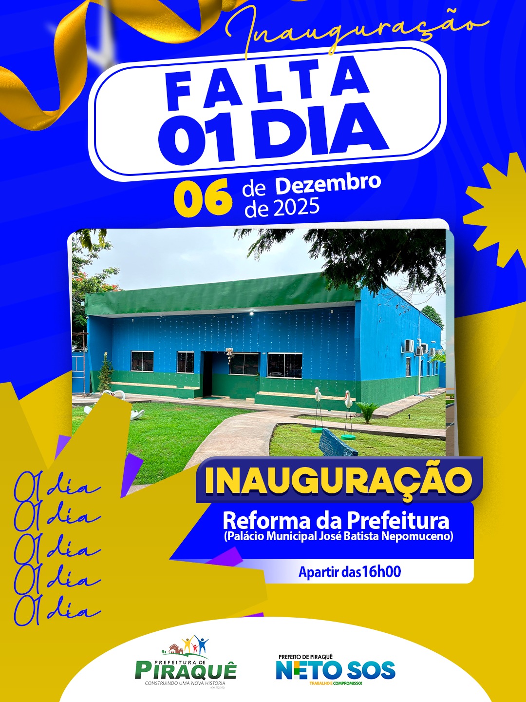 Amanhã, Piraquê recebe mais um grande presente: a entrega do Prédio da Prefeitura totalmente reformado!