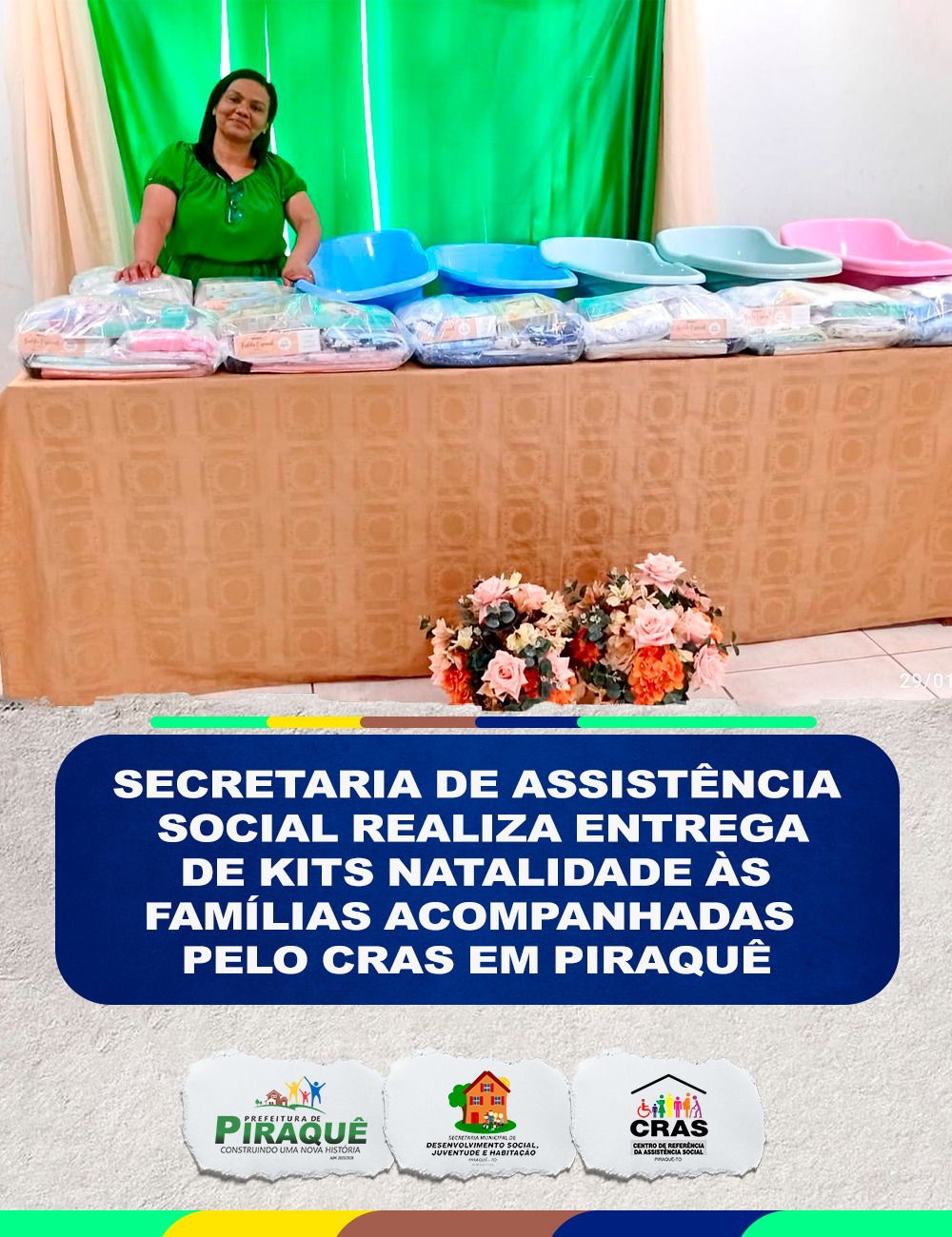 A Secretaria Municipal de Assistência Social realizou a entrega de kits natalidade às famílias acompanhadas pelo Centro de Referência de Assistência Social (CRAS) de Piraquê.