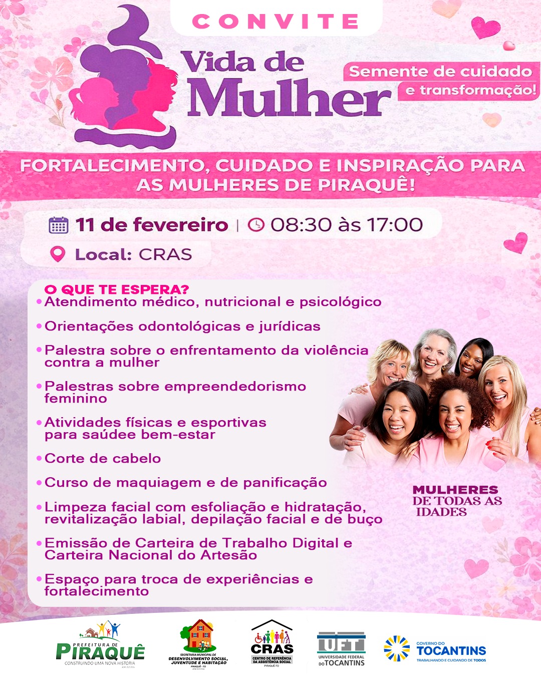 A Caravana do Projeto Vida de Mulher convida você para um dia inteiro de cuidado, acolhimento, aprendizado e fortalecimento feminino.