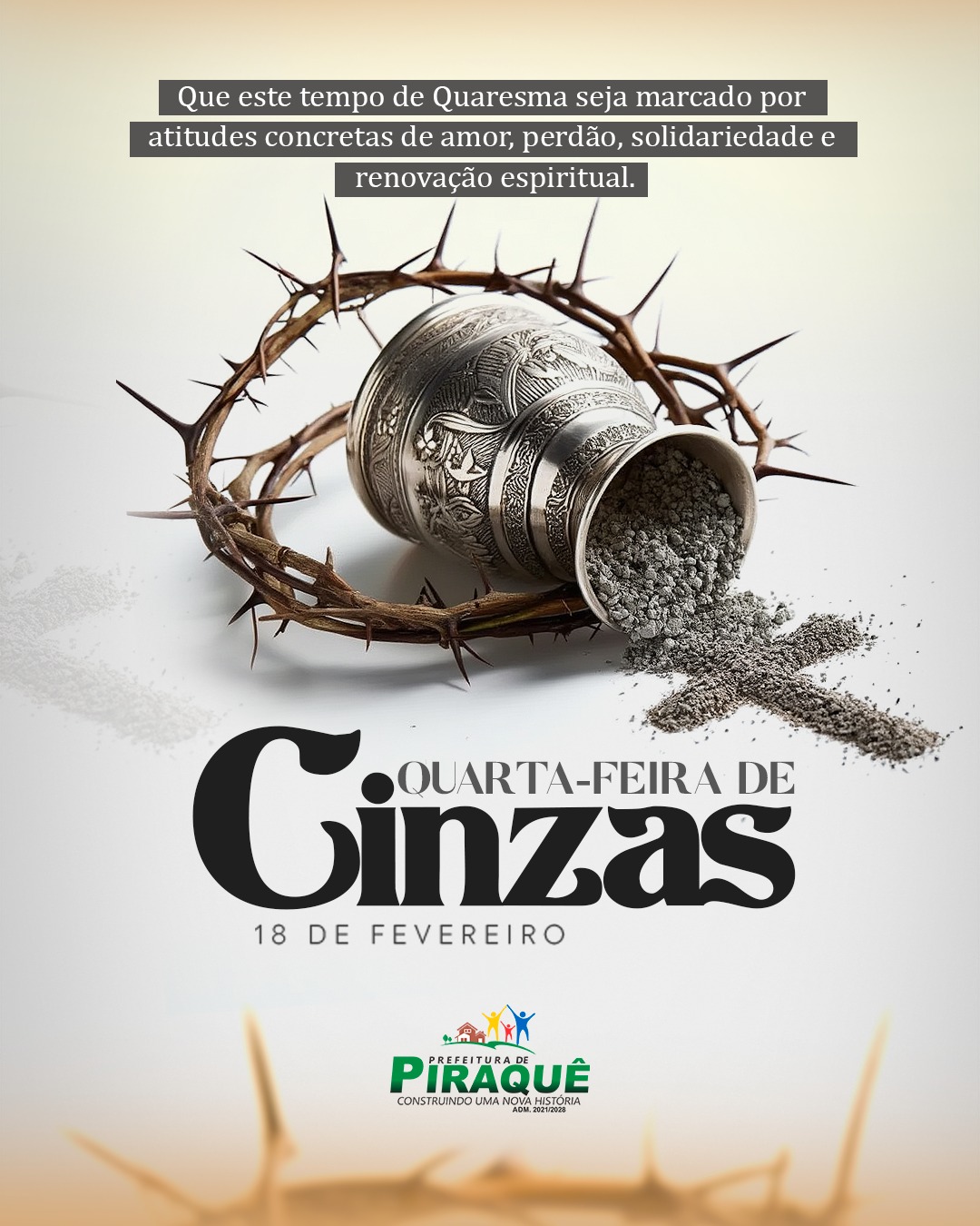 Iniciamos o tempo da Quaresma, período de reflexão, fé e renovação espiritual. Que este seja um momento de fortalecer valores como amor, perdão e solidariedade.