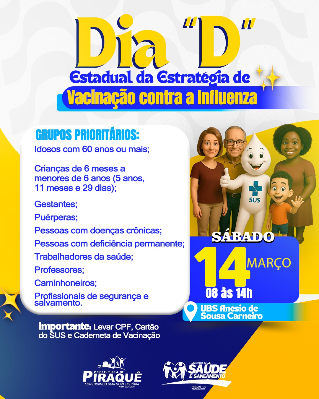 Importante: Levar CPF, Cartão do SUS e Caderneta de Vacinação.