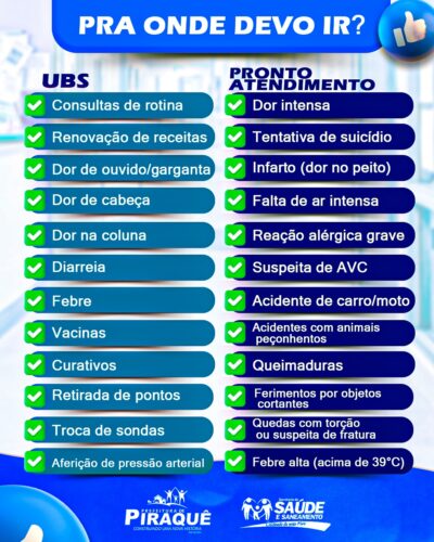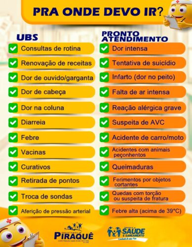 Para evitar transtornos, filas desnecessárias e atrasos no atendimento, é fundamental saber onde procurar atendimento de saúde de acordo com cada situação. UBS (Unidade Básica