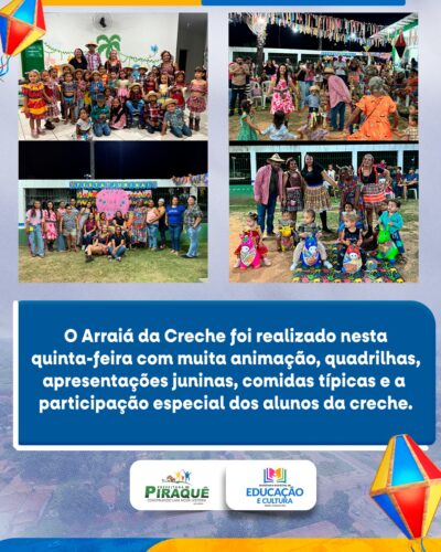 A Prefeitura de Piraquê celebra com alegria a formatura do Pré-Escolar II da Creche Municipal de Tempo Integral – Meus Primeiros Passos, um momento especial