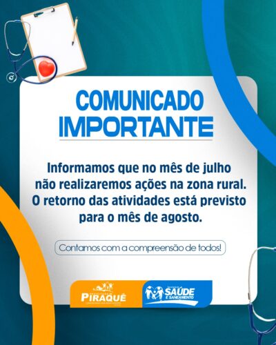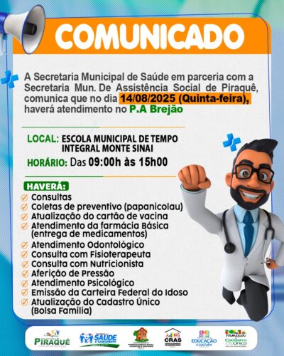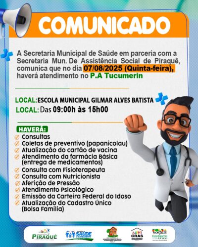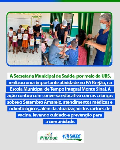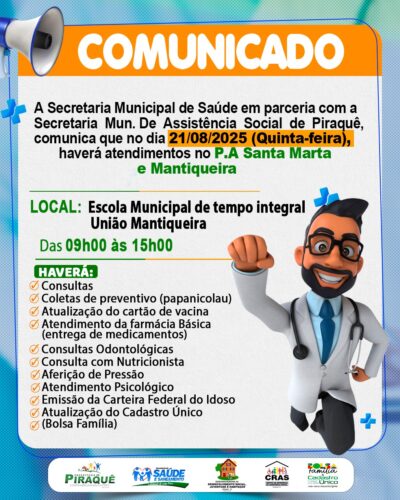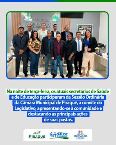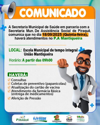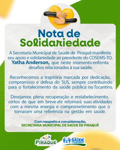 A Prefeitura Municipal de Piraquê, em nome do Prefeito, Silvino Oliveira De Sousa, a equipe da Secretaria Municipal de Saúde e comunidade em geral, vem