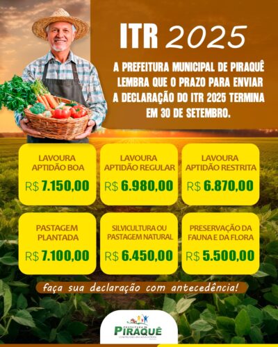 A Prefeitura Municipal de Piraquê, comunica a todos que a Justiça Eleitoral estará realizando atendimento itinerante no município de Piraquê, nos dias 24 a 26