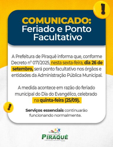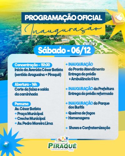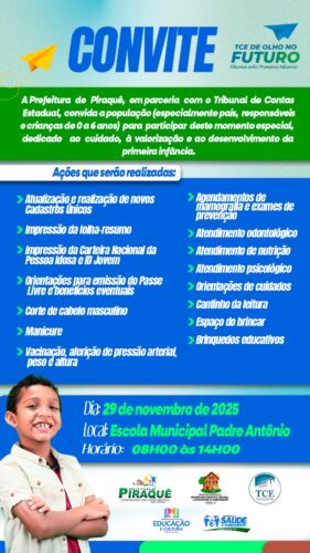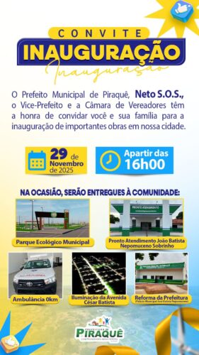 É com muita alegria que o Prefeito Neto SOS, tem a honra de convidar toda a população Piraqueense para celebrar o 31° Aniversário de Piraquê,