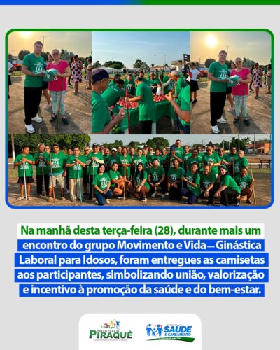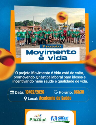 O projeto Movimento é Vida está de volta, promovendo ginástica laboral para idosos e incentivando mais saúde, bem-estar e qualidade de vida. Data: 10/02/2026Horário: 06h30Local: