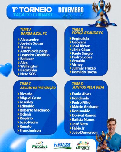 Iniciamos nesta semana o municipal de futsal masculino e feminino, em comemoração aos 31 anos de Piraquê. Ao todo, foram inscritas 08 (oito) equipes todas