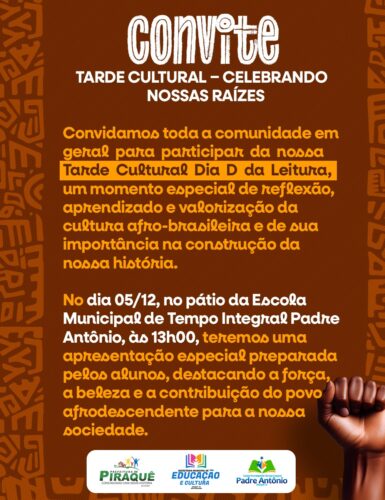 A Prefeitura de Piraquê, por meio da Lei Paulo Gustavo, apoia e valoriza iniciativas culturais que fortalecem a memória, a identidade e a história do