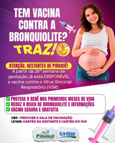 A Secretaria Municipal de Saúde de Piraquê informa que as Segundas doses e Reforço da vacina contra COVID-19 já se encontram disponíveis na UBS Anésio