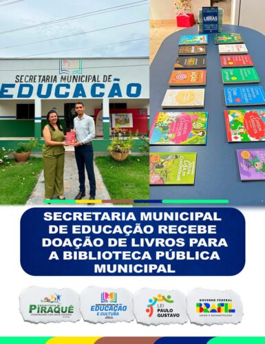A Prefeitura de Piraquê, por meio da Secretaria Municipal de Educação, recebeu a doação de livros destinada à Biblioteca Pública Municipal, realizada por Gustavo dos