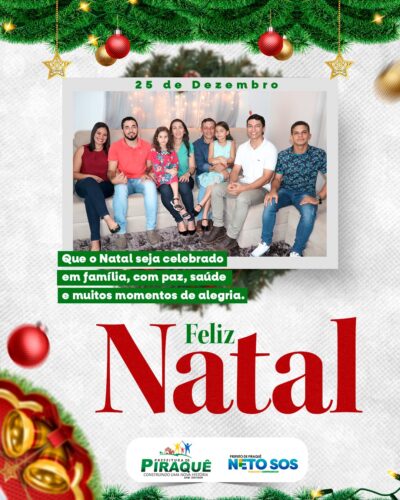 O prefeito Neto SOS, a primeira-dama Roseane e toda a família desejam a todos um Feliz Natal, com muita saúde, paz, amor, alegria e prosperidade.