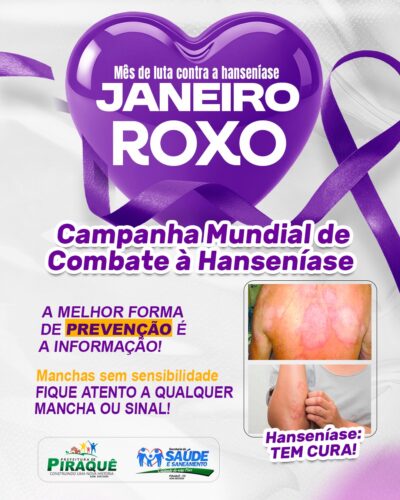 Mês de conscientização e combate à hanseníase. A melhor forma de prevenção é a informação!Fique atento aos sinais: manchas na pele com perda de sensibilidade,