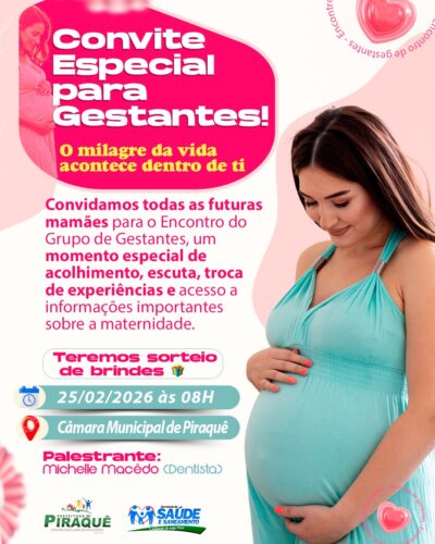 A Secretaria Municipal de Saúde de Piraquê através da Unidade Básica de Saúde convida você gestante, para participar do 4º Encontro do Grupo de Gestantes